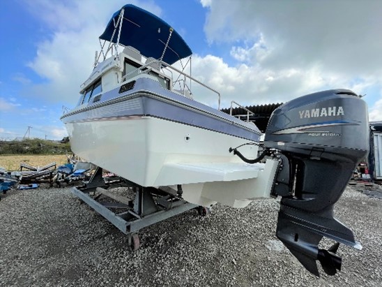 船内外機船(ドライブ船)のエンジンを降ろし、船体(モータウェル)をカット又はパワーブラケットを取り付けてエンジンを船外機に載せ替えたプレジャーボートです。