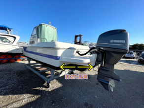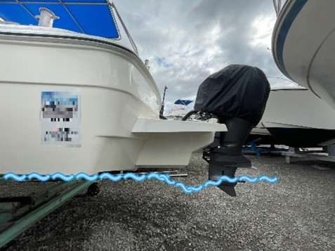 ブラケットを取り付けるタイプの船外機改造艇は船体の水線長を伸ばすことで直進航行での安定性が向上します。ブラケットを取り付けることで実寸全長は約2ft延びることになります。(23ft船外機改造艇の場合、約25ftの実寸全長)