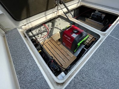 40~80kgのバラストを搭載してください。発電機やフューエルサブタンクを旧エンジンルームに入れることで船尾側の重量増加で症状を改善することができます。